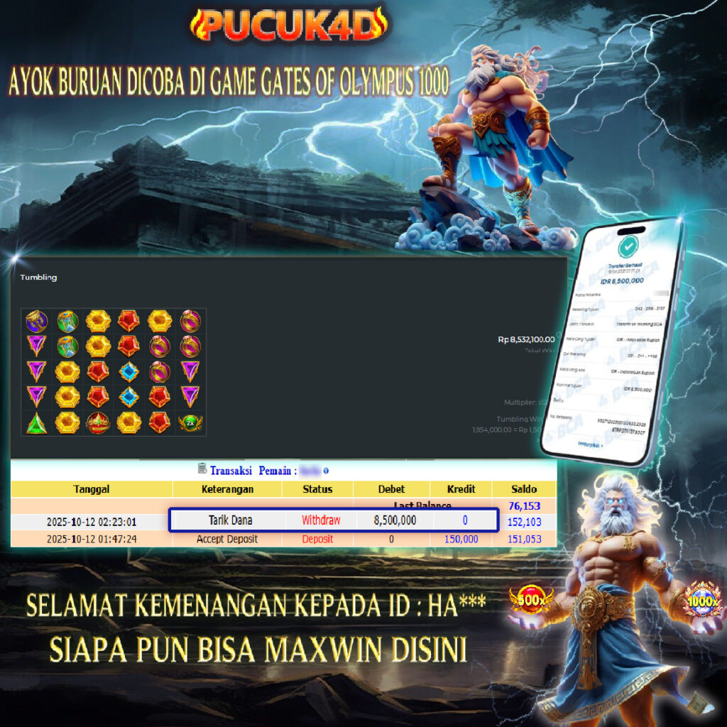 Telah berhasil mendapatkan kemenangan besar di ( GATES OF OLYMPUS 1000 ) dengan kemenangan Sebesar Rp 8,5 JT Setelah mengisi formulir withdraw dengan kurung waktu hanya 5 – 10 menit. Pihak PUCUK4D sudah melakukan transfer kepada pemilik Userid dan dana sudah dapat di cairkan oleh pemenang. Bukti pembayaran yang kami berikan merupakan bukti pembayaran yang SAH / VALID yang langung di dapatkan melaui tanda transfer transaksi dari Bank yang di tuju